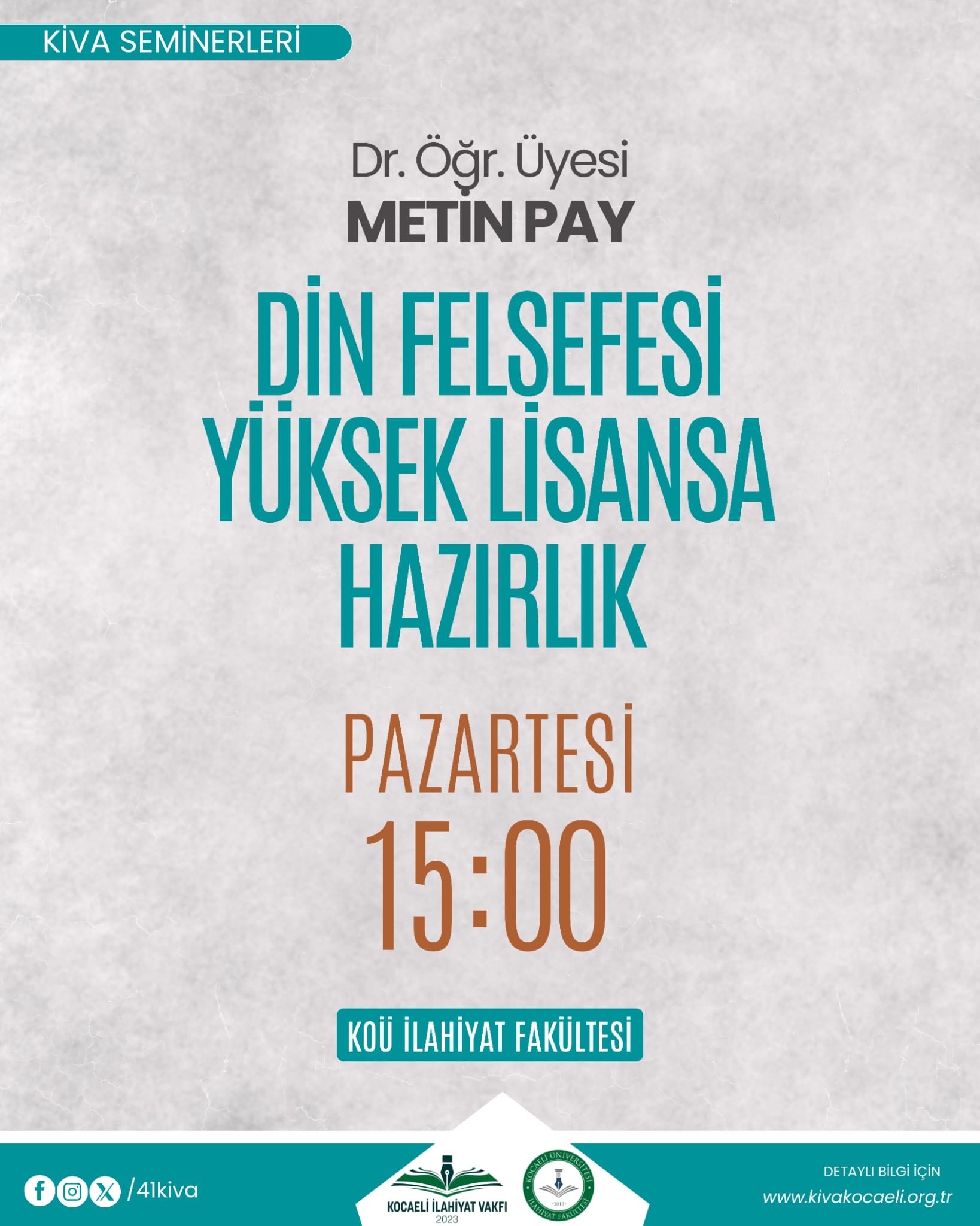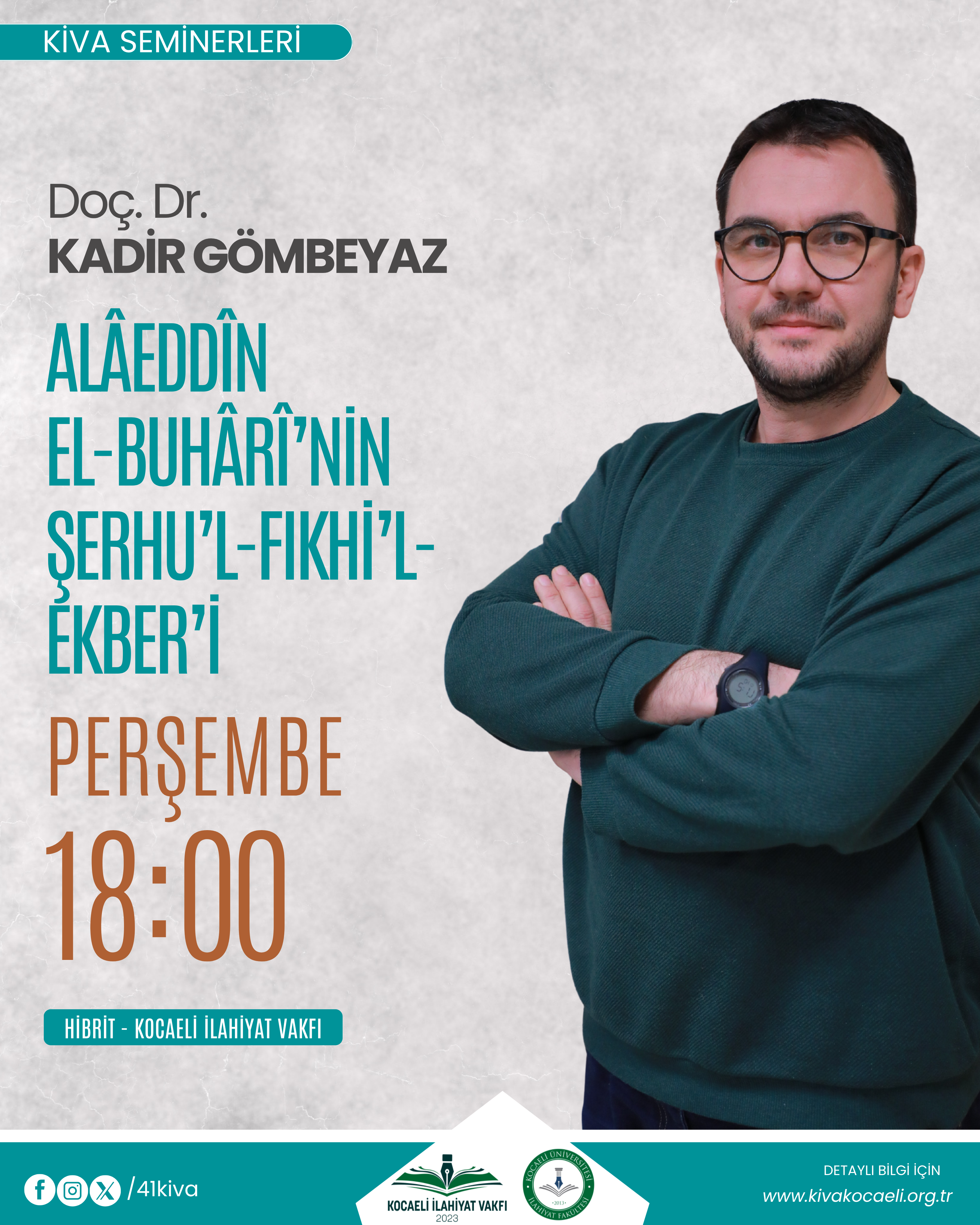 2025-2026 eğitim öğretim döneminde Kocaeli İlahiyat Vakfı ve Kocaeli Üniversitesi İlahiyat Fakültesi iş birliğinde öğrencilerimizin eğitimine katkı sunmak amacıyla gerçekleştirilen "Kiva Seminerleri" başlıyor.