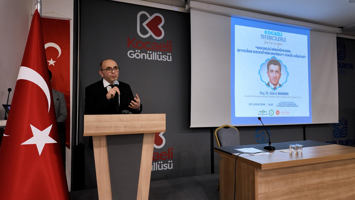 Kocaeli İlahiyat Vakfı, KOÜ İlahiyat Fakültesi ve Kocaeli Müftülüğü iş birliğinde gerçekleştirilen Kocaeli Tefsircilerle Buluşuyor projesi kapsamında gerçekleştirilen seminerlerin üçüncü konuğu Karabük Üniversitesi İlahiyat Fakültesi Tefsir Anabilim Dalı Öğretim Üyesi Doç. Dr. Şükrü MADEN oldu.